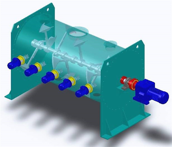 物料在上述犁刀和飛刀的復合作用下,不斷更換、擴散、在較短時間內(nèi)達到均勻混合,混合精度較高。
