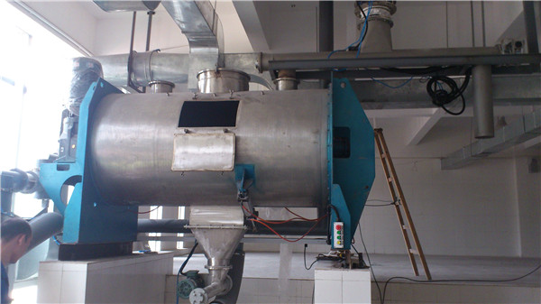 對需要固-液混合的物料,混合液體通過噴液裝置均勻噴灑在筒體內(nèi)運動的物料上。