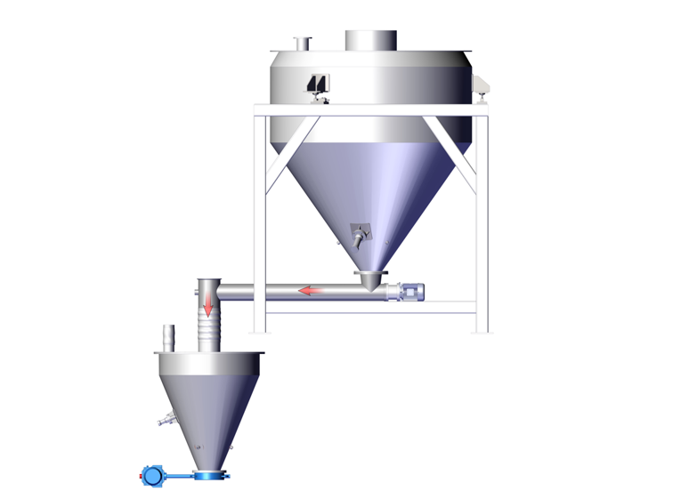 3:直接為下級(jí)設(shè)備配料的最佳配料方式,由于物料直接落入下級(jí)設(shè)備,根本上杜絕了料倉的物料殘留問題;
